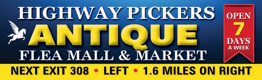 At Highway Pickers we offer 220 booths on 3 floors and are currently adding more booths. We sell antiques, glassware, primatives, baby toys, clothing, costume jewlery, Indian artifacts, antique tools, blackberry paint, antique furniture, and lots more.